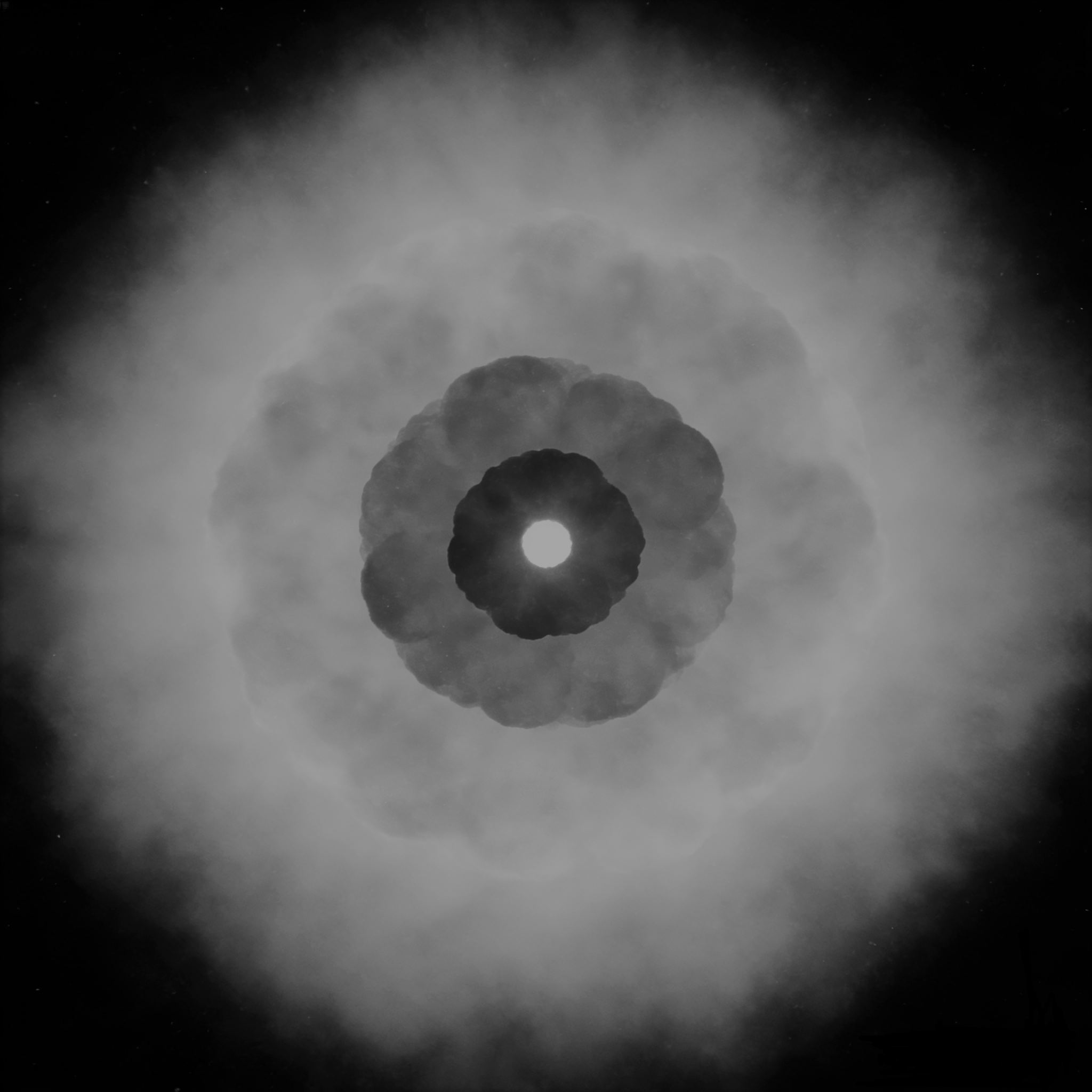 (2)“成熟-黑洞”的爆炸(Initial Explosion,对应于 ΛCDM 的 Big bang),引爆了“成熟的-宇宙中心暗物质巨球”的创世大爆炸(Genesis Explosion,对应于ΛCDM 的 inflation)。